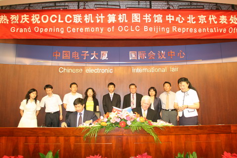 2007年7月20日,在北京中關(guān)村的中國電子大廈會(huì )議廳里,美國聯(lián)機計算機圖書(shū)館中心(簡(jiǎn)稱(chēng)OCLC)宣布在亞洲設立的第一個(gè)代表處――北京代表處正式成立。在成立典禮儀式上,北京方正阿帕比技術(shù)有限公司與OCLC簽署了在中國內地的代理授權協(xié)議,方正集團高級副總裁兼北京方正阿帕比技術(shù)有限公司CEO方中華、OCLC全球總裁Jay Jordan及全球副總裁Andrew Wang共同出席了簽約儀式。參加典禮的還有亞洲多個(gè)國家和地區的嘉賓和代表,北京大學(xué)圖書(shū)館戴龍基館長(cháng)也應邀出席。