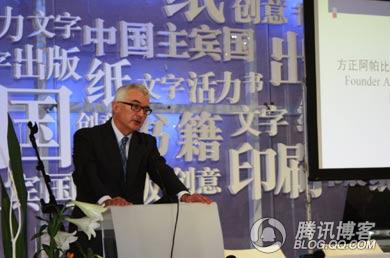 圖:方正集團董事長(cháng)魏新在法蘭克福書(shū)展方正發(fā)布會(huì )上致辭