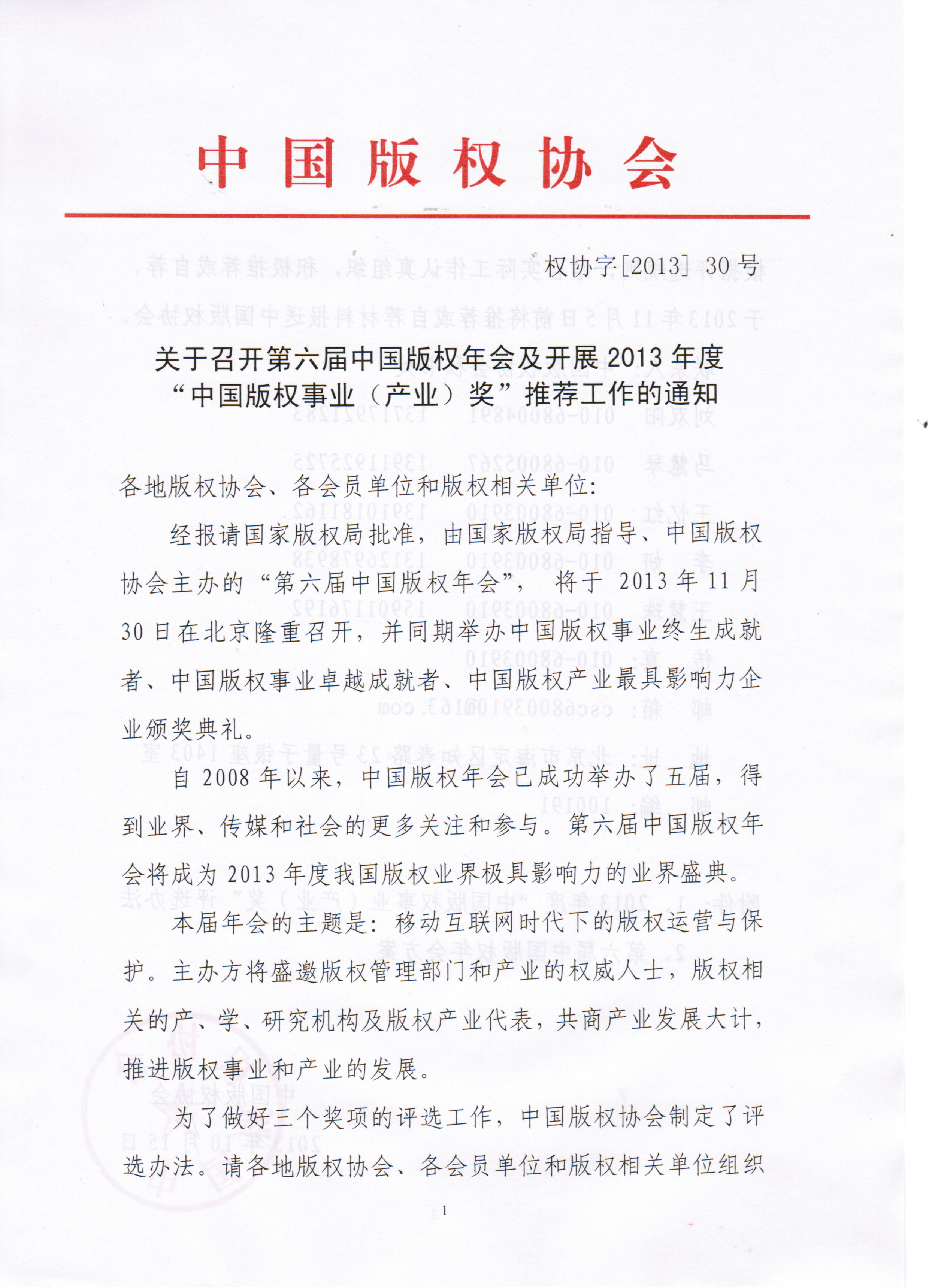 中國版權事業(yè)(產(chǎn)業(yè))獎評選工作說(shuō)明
