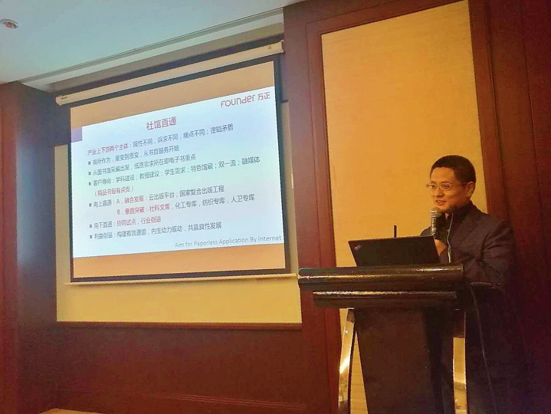 最后,方正阿帕比產(chǎn)品與戰略委員會(huì )主任鄔國明先生,以“展望2018”為主題,強調了2018年方正阿帕比將強化“電子書(shū)建設的有效性”,向圖書(shū)館機構推出有效的、高質(zhì)量的內容和服務(wù)產(chǎn)品。